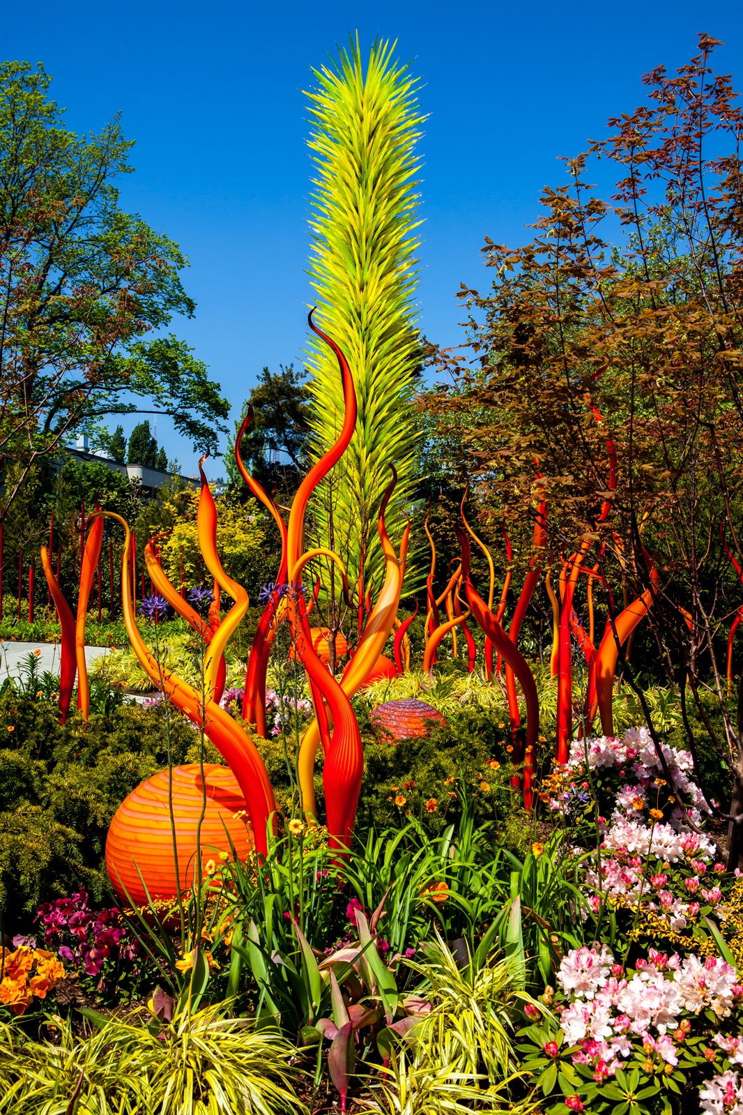 Then on to the Olympic Scultpure Park, an outdoor art installation on the water. The perfect stop prior to going to Seattle Center. In this area, of course there is the Space Needle. Up to you if you want to do that. I recommend Coffee at Caffee Vita (KEXP) which has phenomenal coffee and it also an operating radio station. There is also the Museum of Pop Culture, the Pacific Science Center (known for its interactive exhibits), and the Chihuly Gardens and Glass. This is a beautiful museum, all a tribute to Dale Chihuly. Absolutely amazing! Do not miss the Glasshouse.